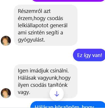 Csodás volt mindkettőnk részére. Észrevettük,hogy a kezelés alatt a testünk finom relaxált állapotba kerül. Ezáltal hatékonyi az öngyógyítás beindulását.